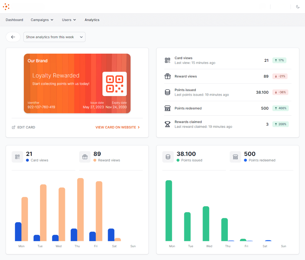 Integrierte Analytics zeigen, welche Aktionen funktionieren und welche Kunden aktiv sind.